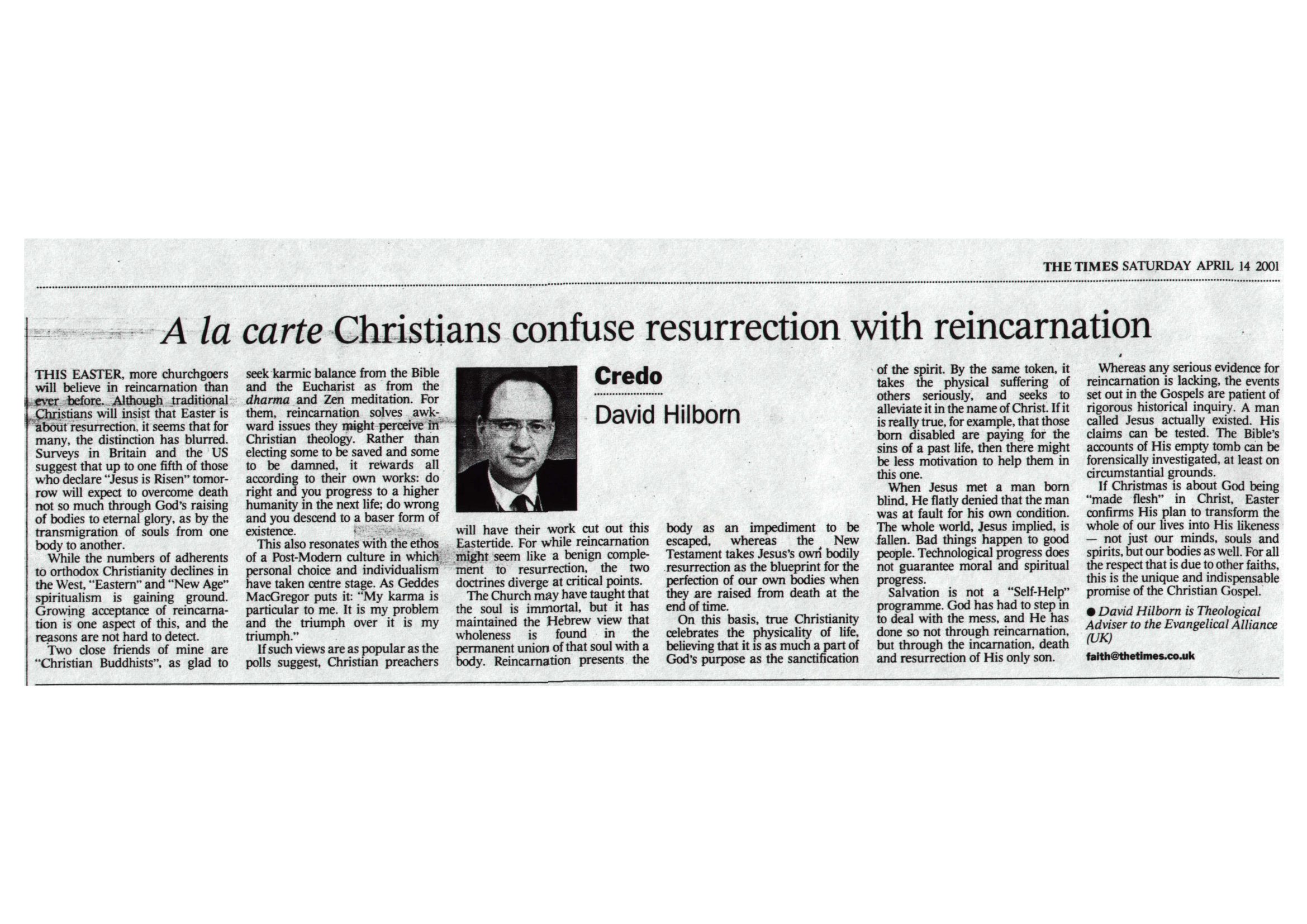 Resurrection & Reincarnation – Times Credo Article 2001 Share this: Click to share on X (Opens in new window) X Click to share on Facebook (Opens in new window) Facebook Like Loading...